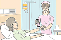 患者のリストバンドから投薬オーダーを確認し、医療ミスを防ぎます。